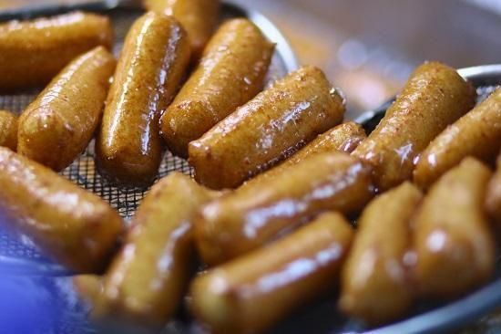 イトヨリ、鯵や錦江湾でとれたメバチなどをブレンドし、その日の気温や湿度を加味しながら丁寧に練り込み、職人の長年の経験から、すり身の微妙な変化を目や手触りで感じながら 仕上げていきます。 それはとても新鮮で香りの良い蒲鉾です。