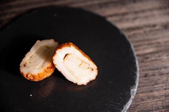 ホタテ貝柱が丸ごと入ったさつま揚げは、丁寧に素材を包み込み、手上げしています。